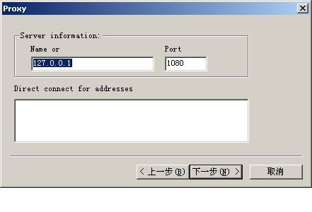 2.3 按照图3填写服务器IP地址127.0.0.1及端口号1080,点击下一步。