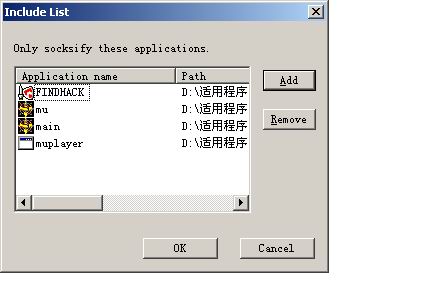 6所示对话框,单击add,添加你想要使用代理的程序(我是准备玩网络游戏奇迹Mu,因此就把